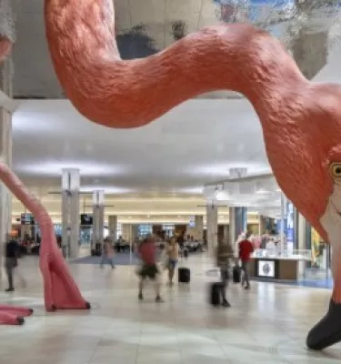 Check out "Phoebe," the famous pink flamingo designed by Matthew Mazzotta at Tampa International Airport.